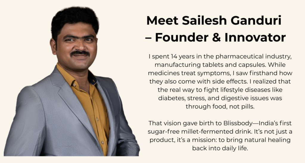 Mr. Sailesh, a passionate pharmacist committed to health and innovation, is the inventive mind behind Bliss Body. Mr. Sailesh went on a journey that led to the birth of Bliss Body, inspired by his mother’s fight with diabetes and a desire to make a difference.