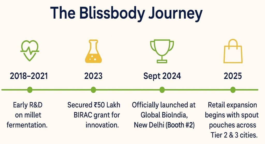 It all started with the goal of transforming millets and naturally plant-based compositions into delicious, nutritional solutions. Sailesh’s goal was to make goods that not only taste good but also improve gut health and overall well-being, in line with the preferences of discerning consumers around the world. Bliss Body arose as a monument to Sailesh’s passion to improve lives via novel feeding, backed by rigorous research and a BIRAC BIG award. It’s more than a brand; it’s a commitment to reimagining the way we nourish ourselves.