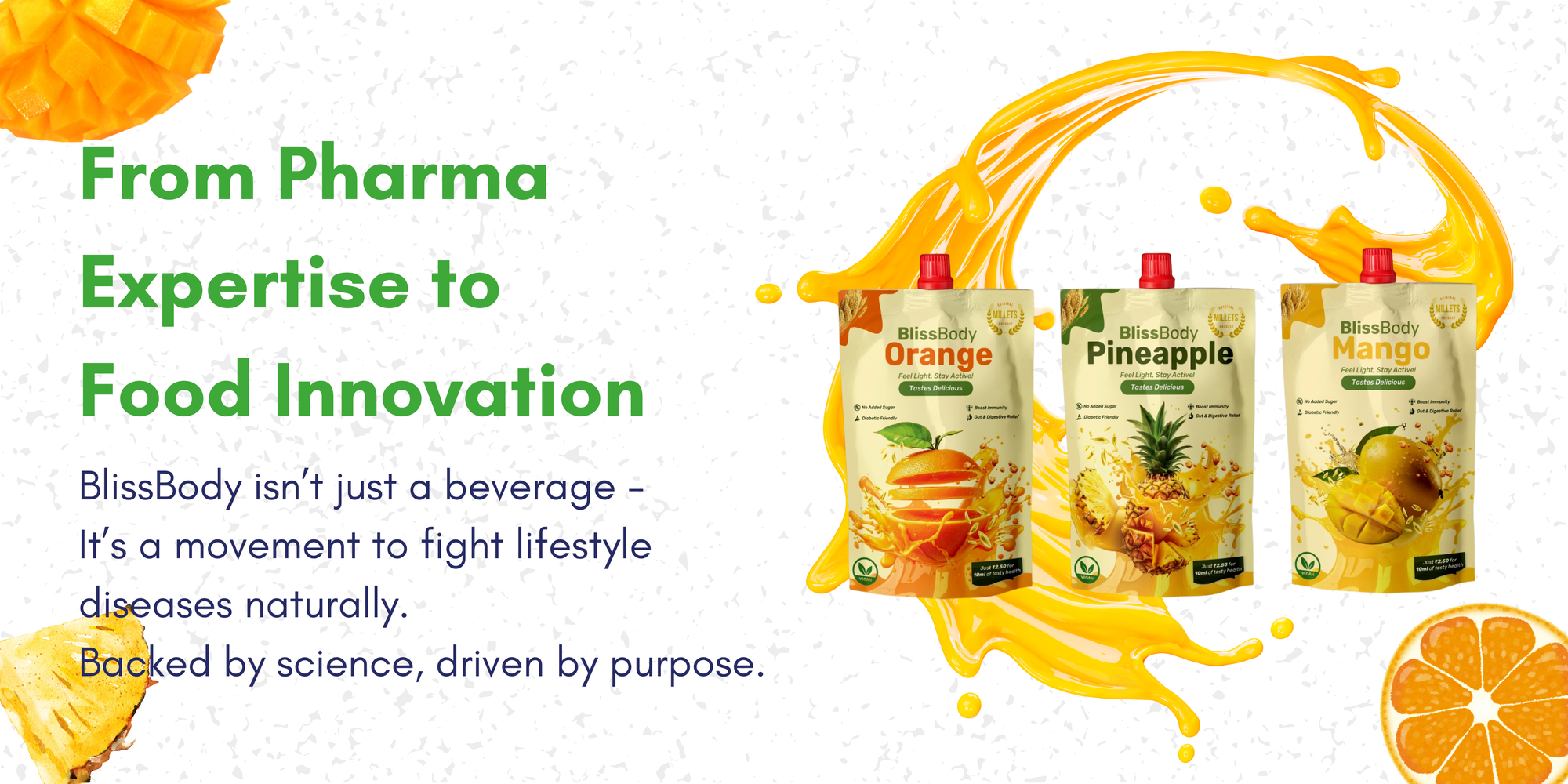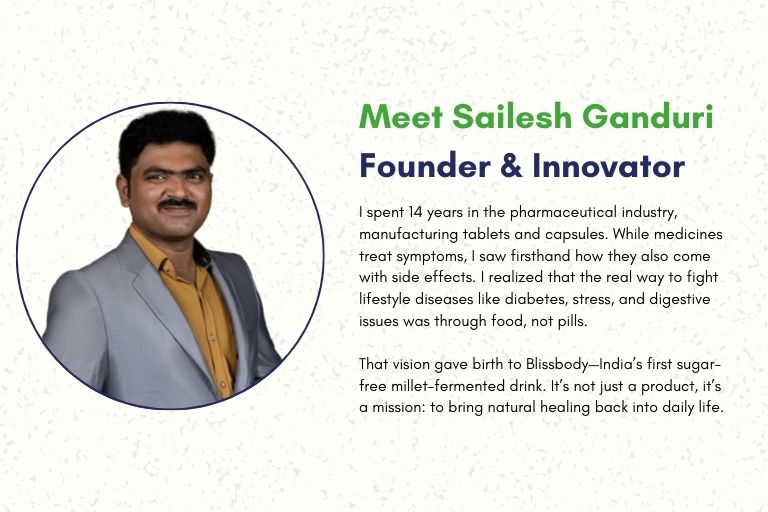 It all started with the goal of transforming millets and naturally plant-based compositions into delicious, nutritional solutions. Sailesh’s goal was to make goods that not only taste good but also improve gut health and overall well-being, in line with the preferences of discerning consumers around the world. Bliss Body arose as a monument to Sailesh’s passion to improve lives via novel feeding, backed by rigorous research and a BIRAC BIG award. It’s more than a brand; it’s a commitment to reimagining the way we nourish ourselves.